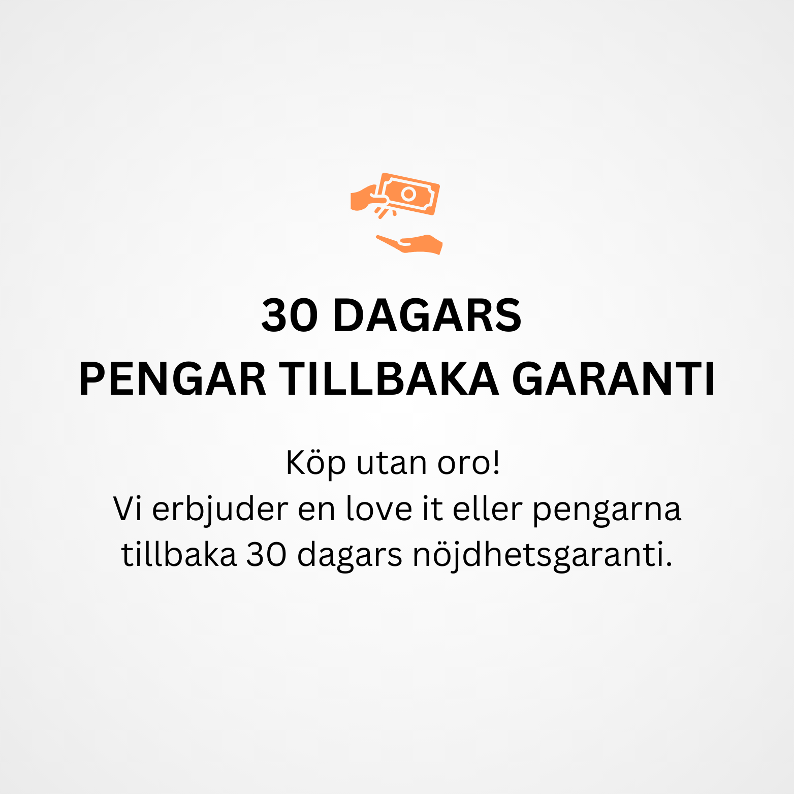 Om du inte är helt nöjd med produkten kan du enkelt returnera den inom 30 dagar och få full återbetalning – utan krångel eller frågor.